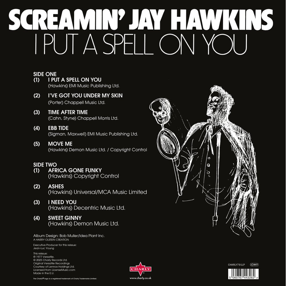 FIRST EVER VINYL REISUE OF THIS CULT COLLECTABLE SPECIAL HALLOWEEN BLOOD SPLATTER EDITION Ex-boxer turned showman, Screamn’ Jay Hawkins was born Jalacy Jay Hawkins in Cleveland, Ohio, in 1929. He was a talented singer-songwriter, musician and actor and during the sixties became infamous for his macabre stage performances that would plague him for the rest of his professional career. Hawkins recorded his signature song “I Put A Spell On You” in October 1956 for Okeh Records, reputedly while drunk, and later claimed that he didn’t even remember making the record. It might explain the wild screaming and cannibalistic grunts that secured his fame and led to his pioneering shock rock stage show. He reprised the song in 1967 with a funky beat which found a release in the States on Decca Records coupled with a rework of the Shades Of Blue “You’re An Exception To The Rule”. The ’67 version features here as the title track to the 1977 album released on the New York Versatile label. Now extremely sough-after this up tempo long-play fuses reimagined standards with new Hawkins compositions and includes the 1973 single “Africa Gone Funky” featuring the legendary Skull Snaps as the backing band, an appropriate choice given Hawkins’ smoking skull-on-a-stick, named Henry!